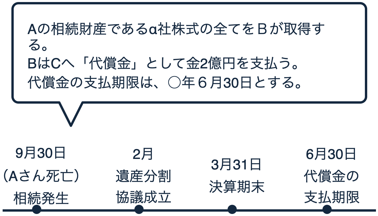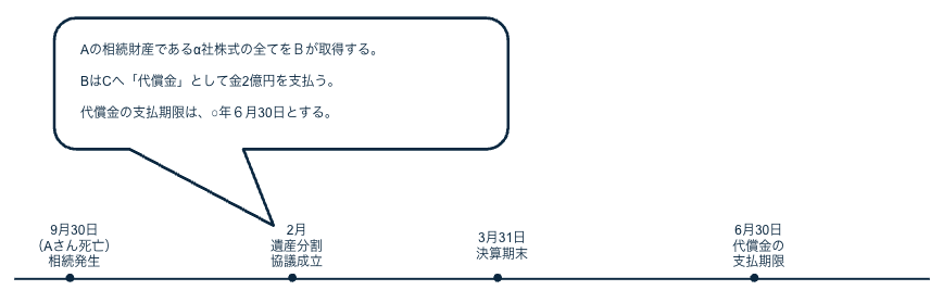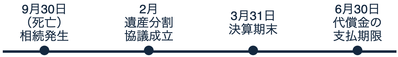 設例をもとにご案内いたします。たとえば、2月中に、以下のような遺産分割協議を成立させました。