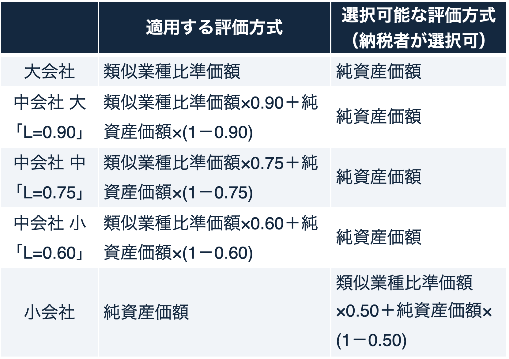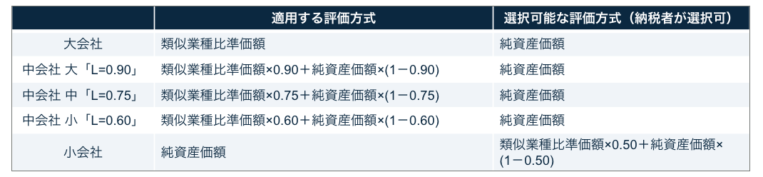 そもそも、非上場会社の株式は、会社規模・会社区分によって適用する評価方式が異なります。具体的には、以下となります。
